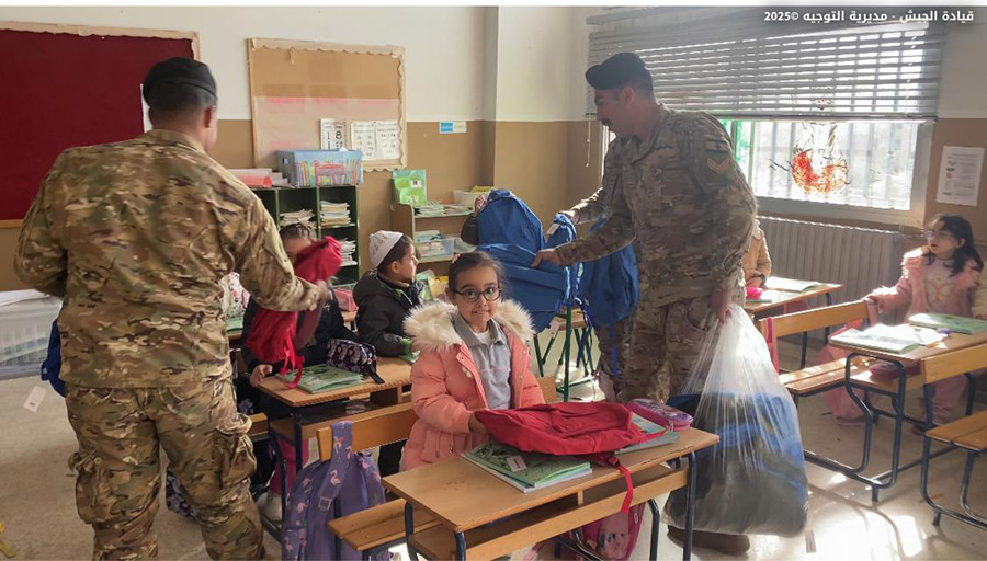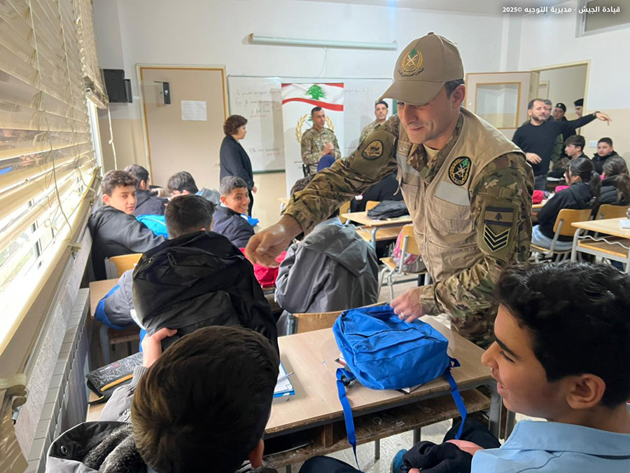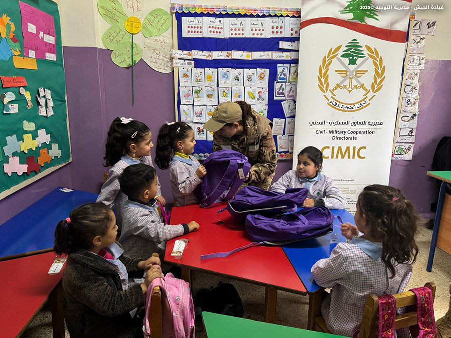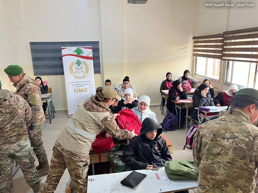 أنهت مديرية التعاون العسكري – المدني CIMIC المرحلة الأخيرة من برنامج توزيع الحقائب المدرسية على 262 مدرسة رسمية في جميع المحافظات، وقد بلغ عدد الحقائب الموزعة 44 ألف حقيبة.