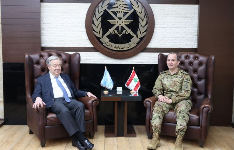 استقبل قائد الجيش العماد رودولف هيكل في مكتبه - اليرزة الأمين العام للأمم المتحدة Antonio Guterres، يرافقه: وكيل الأمين العام للأمم المتحدة لعمليات السلام Jean-Pierre Lacroix، المنسقة الخاصة للأمم المتحدة في لبنان Jeanine Hennis – Plasschaert، رئيس وقائد بعثة قوة الأمم المتحدة المؤقتة في لبنان - اليونيفيل اللواء Diodato Abagnara، وتناول البحث الأوضاع العامة والتطورات في لبنان والمنطقة. وجرى التشديد على ضرورة تطبيق القرارات الدولية، ولا سيما القرار ١٧٠١، والالتزام باتفاق وقف الأعمال العدائية، وتطبيق الجيش خطته.