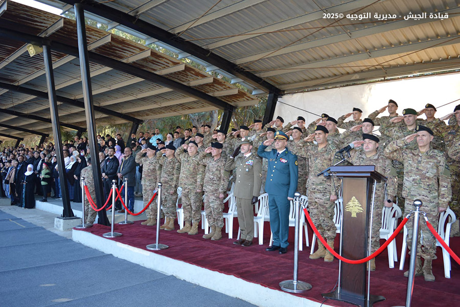 أثناء الحفل، ألقى العميد أحمد عمري قائد المعهد كلمة جاء فيها: "يواجه لبنان تحديات أمنية مختلفة، لا سيما في ظلّ الاعتداءات الإسرائيلية، وبعضها من صعوبات داخلية تحتاج إلى أعين يقظة وسواعد ثابتة. وجودكم في هذا الميدان هو ركيزة لحماية الحدود وصون الاستقرار في الداخل، فأنتم اليوم لستم مجرد عناصر في الجيش، بل أنتم خط الدفاع الأول، والعاملون بصمت في سبيل أن يبقى الوطن متماسكًا وآمنًا".