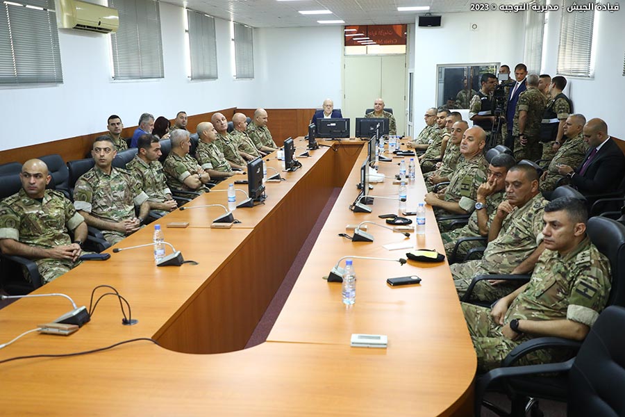 وأكد قائد الجيش"أن الدفاع عن لبنان هو واجب طبيعي ومشروع للجيش في مواجهة الأخطار التي تهدده وعلى رأسها العدو الإسرائيلي، وأن المؤسسة العسكرية تتابع تطورات الأوضاع وتحافظ على الجهوزية عند الحدود الجنوبية، بالتزامن مع تنفيذ مختلف المهمات في الداخل"، مشيرًا إلى "الإرادة الصلبة لدى العسكريين وإيمانهم بقدسية المهمة من دون تردد"، ومثمنًا "دعم الرئيس ميقاتي للجيش ووقوفه إلى جانبه".