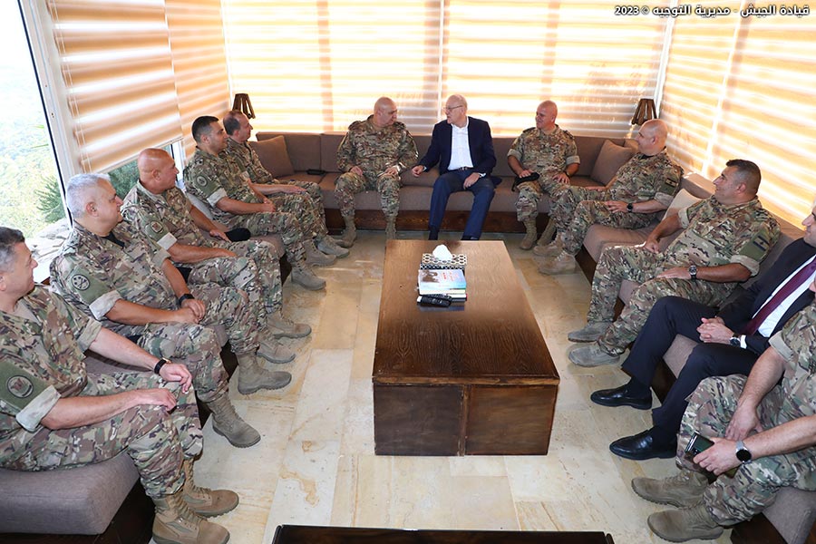 وأعرب رئيس الحكومة "عن تقديره العميق لتضحيات الجيش دفاعًا عن لبنان، في ظل الأوضاع الاستثنائية الراهنة عند الحدود الجنوبية والاعتداءات المتكررة من جانب العدو الإسرائيلي".