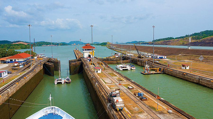 انتهت الأعمال في قناة بنما سنة 1914 وافتُتحت أمام حركة الملاحة البحرية لتصبح ممرًّا مائيًا حيويًا بطول 82 كلم وعرض يراوح بين 91 مترًا و300 متر، يربط بين المحيطين الأطلسي والهادئ، ما يختصر مسافات السفر ويوفّر تكاليف النقل والوقت. مثلًا، السفن الأميركية التي كان عليها اجتياز مسافة تفوق 21,000 كلم للانتقال ما بين سواحل الولايات المتحدة على المحيط الهادئ والمحيط الأطلسي، باتت تجتاز مسافة 8000 كلم فقط بعد إنشاء القناة.