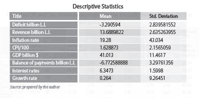 The model-dependent variable is the general budget deficit, reflecting the Lebanese financial and economic crisis.