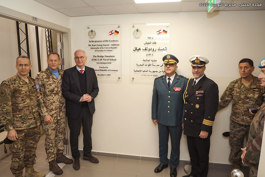 A ceremony was held at the Jounieh Naval Base to inaugurate the bridge simulator, supported by the German authorities, in the presence of the German Ambassador to Lebanon, Kurt Stoeckl-Stillfried, the Deputy Chief of Staff for Equipment representing the Army Commander-in-Chief, General Rodolph Haykal, as well as a number of officers and military attachés.