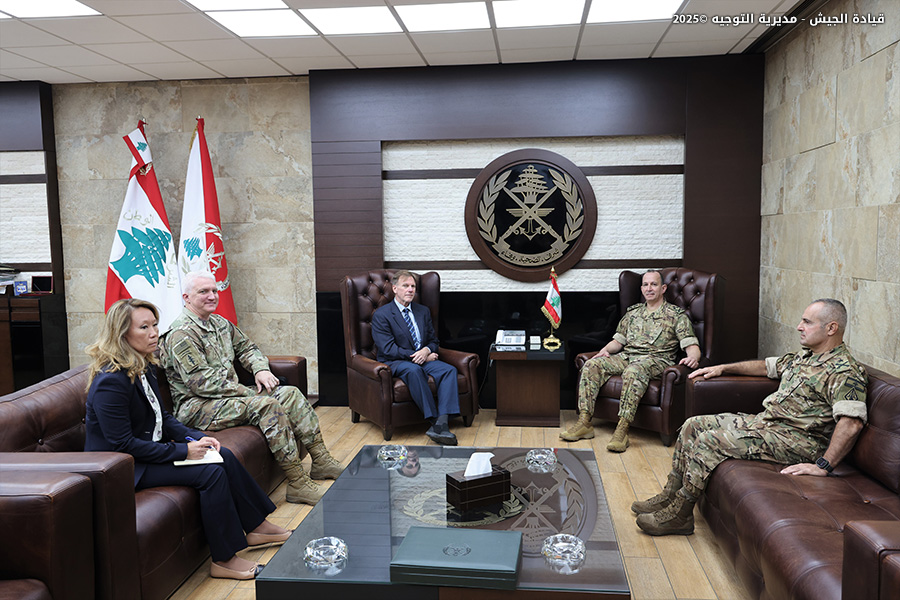 The Lebanese Army Commander-in-Chief General Rodolph Haykal received in his office in Yarzeh the U.S. Embassy Chargé d'Affaires in Lebanon, Keith Hanigan, accompanied by Military Attaché Colonel Jason Belknap. The discussions touched on general developments in Lebanon and the region.