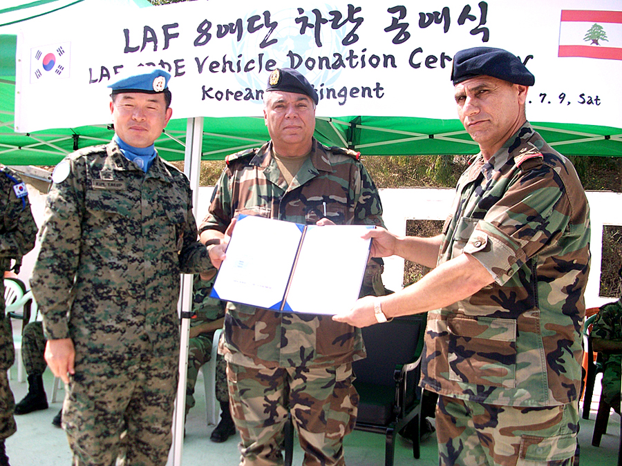 في حضور العميد الركن صادق طليس، قائد قطاع جنوب الليطاني، ممثلاً قائد الجيش العماد جان قهوجي، وقائد الوحدة الكورية العاملة ضمن قوات الأمم المتحدة المؤقتة العقيد تاوأب كيم وعدد من الضبّاط، جرى في قيادة لواء المشاة الثامن في بلدة كفردونين حفل تسلّم سيارة «فان» قدّمتها الكتيبة الكورية إلى الجيش اللبناني. تخلّل الحفل تقديم مجموعة من الكتيبة الكورية عرضًا قتاليًا، وكلمة لقائد الكتيبة الذي تسلّم درعًا تذكاريًا من قائد لواء المشاة الثامن.