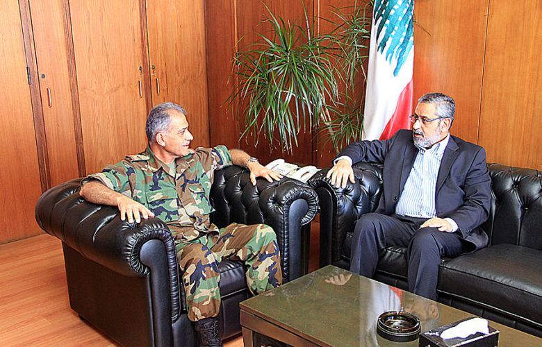 استقبل رئيس الأركان، في مكتبه في اليرزة، رئيس لجنة الحوار اللبناني - الفلسطيني السفير عبد المجيد قصير، وبحثا أوضاع المخيمات الفلسطينية في لبنان وبخاصة موضوع إعمار مخيم نهر البارد.