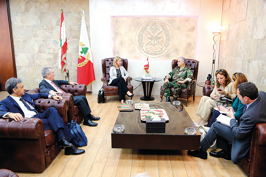 استقبل العماد جان قهوجي، وزيرة الخارجيّة الإيطاليّة السيدة فيديريكا موغريني على رأس وفد مرافق، في حضور سفير إيطاليا السيد جوزيبي مورابيتو، وتناول البحث الأوضاع العامة في لبنان والمنطقة، والعلاقات الثنائية بين جيشي البلدين، والخطوات المقبلة على صعيد مؤتمر روما.