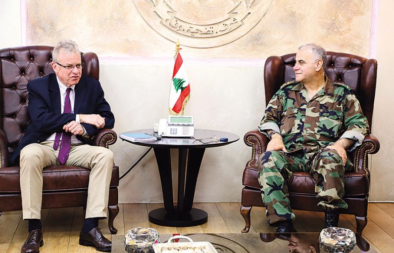 استقبل قائد الجيش العماد جان قهوجي، في مكتبه في اليرزة، سفير بريطانيا السيد Tom Fletcher.