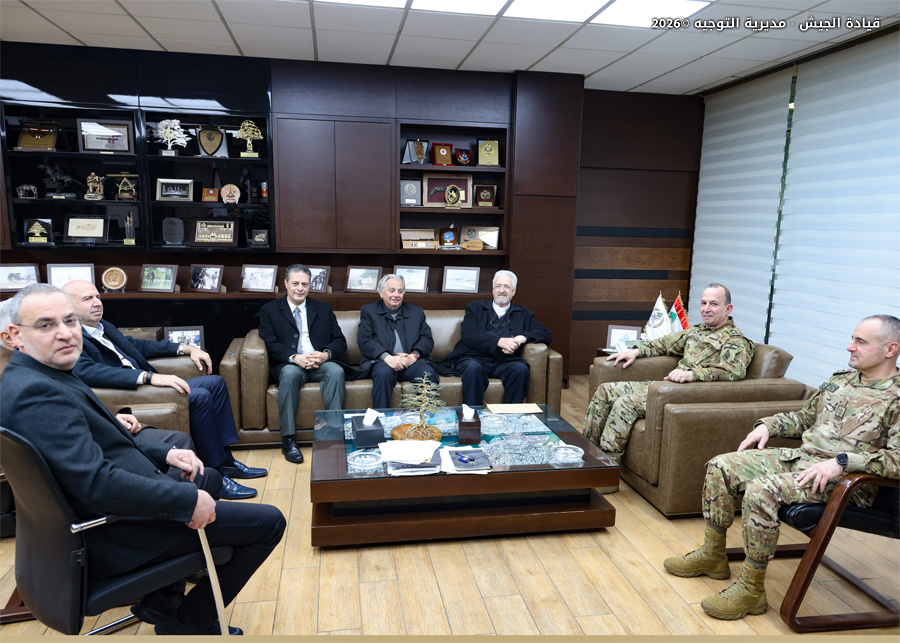 استقبل قائد الجيش العماد رودولف هيكل في مكتبه - اليرزة المنسقة الخاصة للأمم المتحدة في لبنان Jeanine Hennis – Plasschaert، وتناول البحث الأوضاع العامة والتطورات في لبنان والمنطقة. كما استقبل رئيس جمعية لابورا الأب طوني خضره مع وفد، في زيارة تضامنية، أكد خلالها أنّ المؤسسة العسكرية هي الضامن الوحيد للبنان، واعتبرها خشبة الخلاص الوحيدة في ظل التحديات الداخلية والخارجية التي تواجهها البلاد.