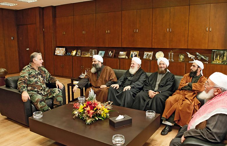 استقبل العماد قائد الجيش، في مكتبه في اليرزة، الأمين العام للمجلس الأعلى اللبناني - السوري الأستاذ نصري خوري وبحثا الأوضاع العامة في البلاد.