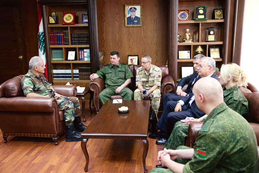 استقبل رئيس الأركان اللواء الركن وليد سلمان، في مكتبه في اليرزة، مساعد وزير الدفاع البيلاروسي للتعاون العسكري الدولي الجنرال أولغ فوينوف، في حضور سفير جمهورية بيلاروسيا السيد الكسندر بانوماريف، وتناول البحث الأوضاع العامة في لبنان والمنطقة، وسبل تطوير علاقات التعاون بين جيشي البلدين.