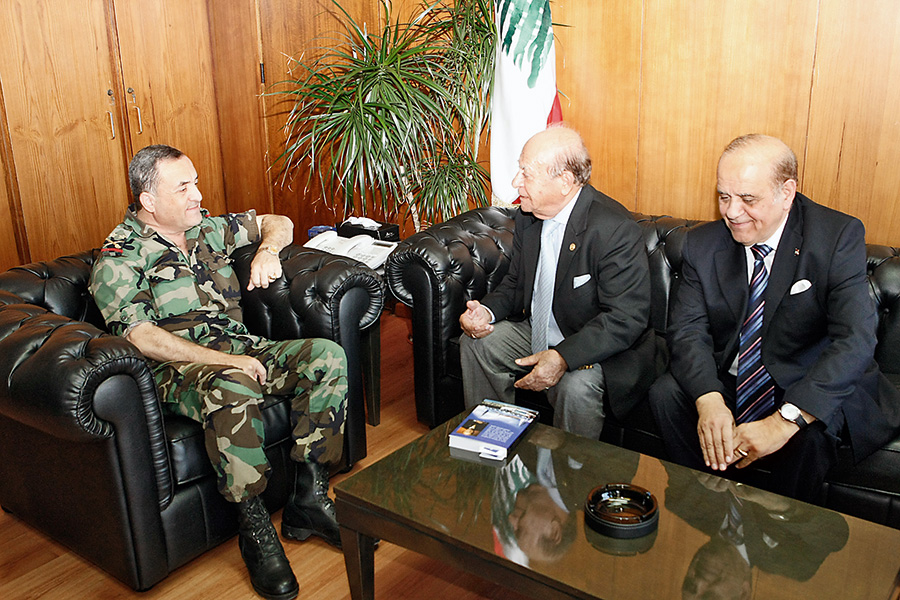 استقبل رئيس الأركان، في مكتبه في اليرزة، السيد سلفاتوري لومباردو، يرافقه كل من السيدة ماري شبلي ومدير مشروع الأونروا في مخيم نهر البارد. وتمّ بحث موضوع إعادة إعمار المخيم وإنجاز أعمال البنى التحتية في مخيمات الجنوب.