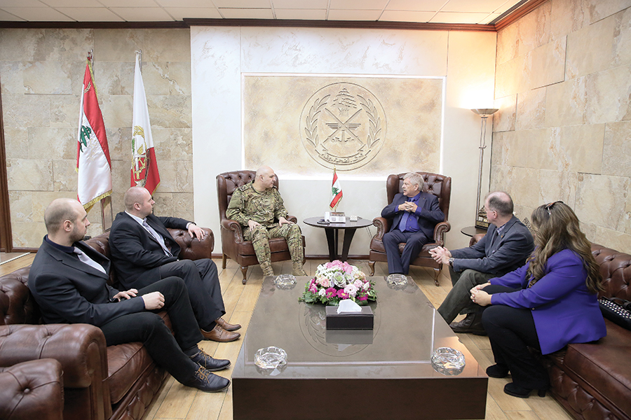 استقبل العماد قائد الجيش رئيس مكتب الشرق الأوسط وشمال أفريقيا في مركز جنيف للرقابة الديموقراطية على القوّات المسلّحة السيّد Arnold Luethold يرافقه نائبه السيّد أيمن أيوب، وبحث معهما في الأوضاع العامة ومسائل عسكرية ذات اهتمام مشترك.