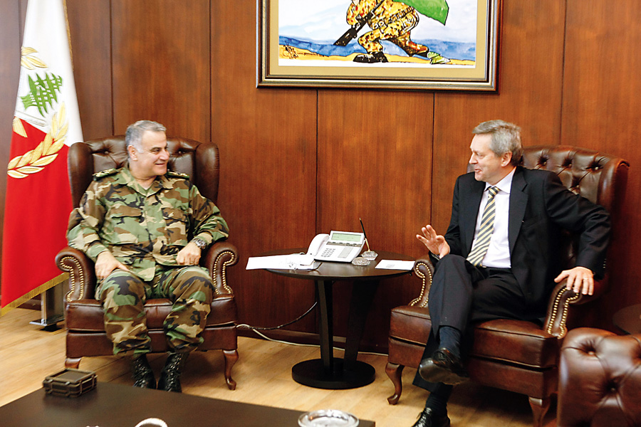 استقبل قائد الجيش العماد جان قهوجي، في مكتبه في اليرزة، سفير فرنسا السيد دنيس بييتون يرافقه الملحق العسكري العقيد فيليب بيتريل، حيث قدّم العماد قهوجي التعزية مجدداً للسفير الفرنسي بوفاة زوجته، فيما ثمّن السفير بييتون الجهود التي بذلها الجيش لانتشال الضحايا وحطام الطائرة الأثيوبية المنكوبة، مؤكداً على التعاون الفرنسي في هذا المجال.