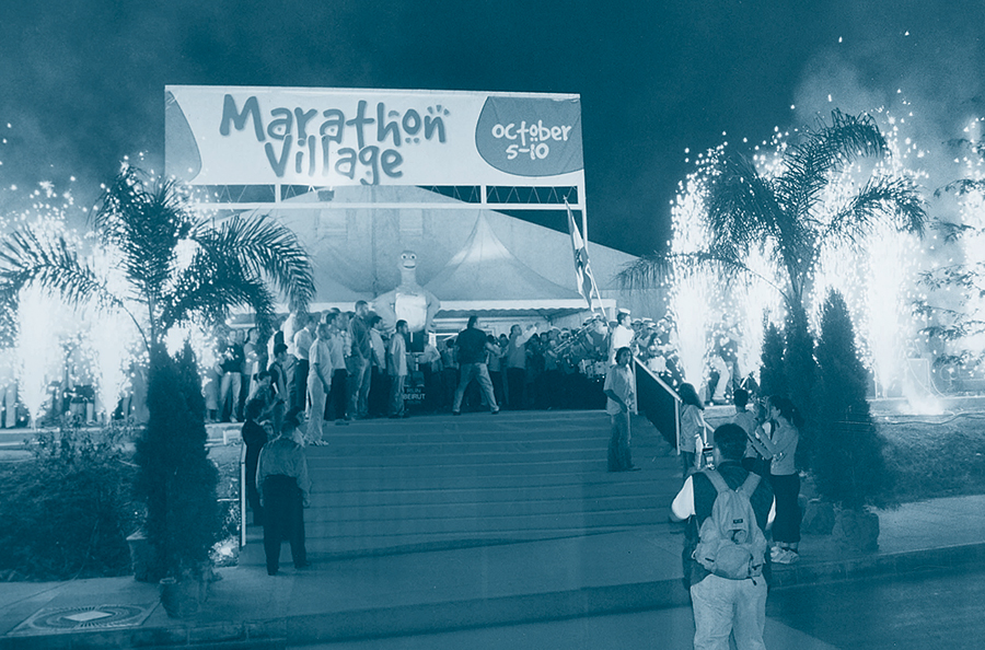 في احتفال حاشد في وسط بيروت التجاري، افتتحت السيدة الأولى أندريه لحود القرية الماراتونية بحضور رسمي وشعبي كثيف. كما حضر الاحتفال العقيد جودت أبو هدير ممثلاً قائد الجيش العماد ميشال سليمان.