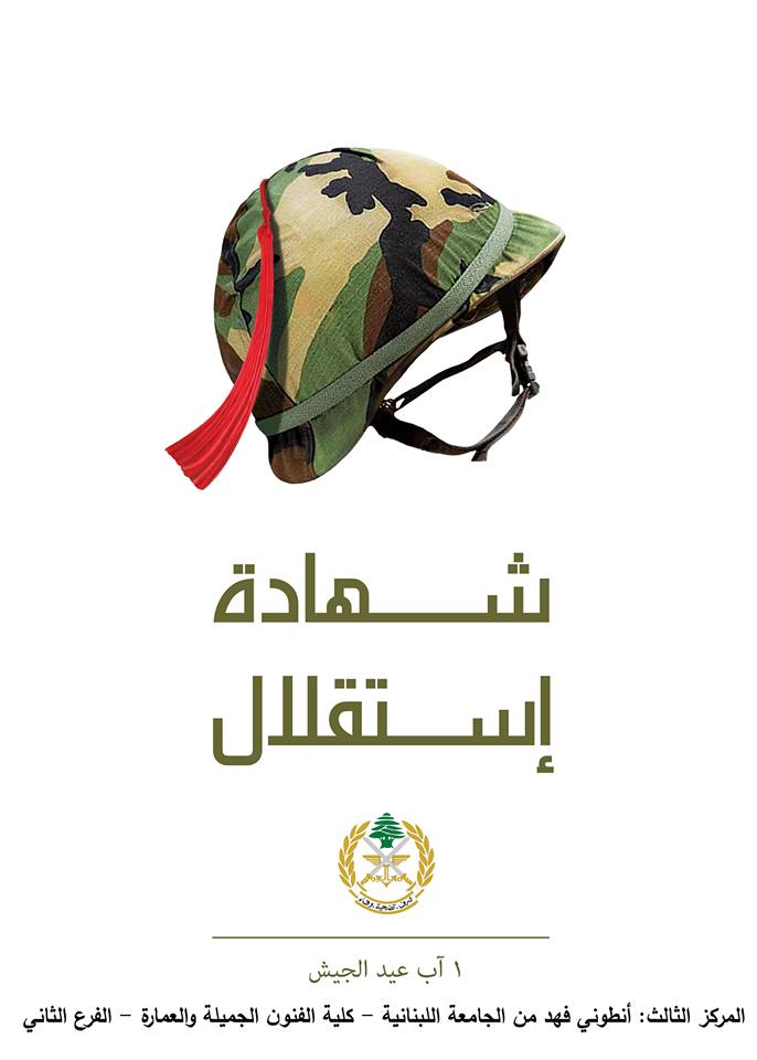 الأعمال الثلاثة الفائزة في مسابقة رسم فني "بوستر" للعام ٢٠١٨ من وحي عيدي الجيش والاستقلال.