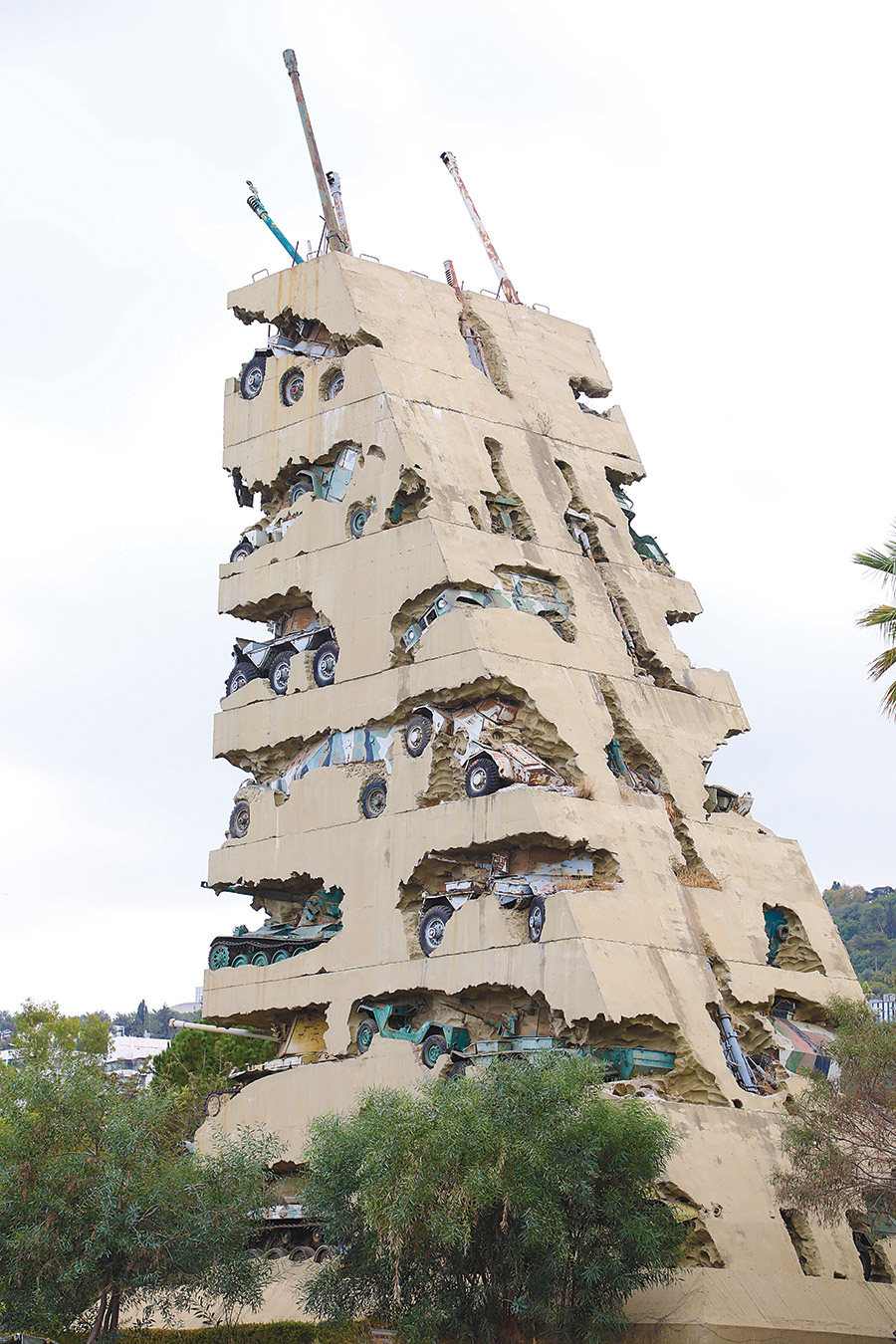 النصب عبارة عن مبنى عالٍ، ومُنحني في أحد جوانبه الأربعة. من الباطون يبلغ ارتفاعه 30 مترًا وقاعدته 19×11,5 مترًا ومؤلف من طبقات مفتوحة وُضِعت داخلها آليات وأسلحة استُعملت خلال الحرب الأهلية في لبنان، وهو ملاصق لنصب الخالدين وموجود بين المتحف العسكري وتمثال فخر الدين، وقد استغرق العمل في إنجاز هذا النصب 4 أشهر (من 3/4/1995 حتى 20/7/1995) ودُشّن بتاريخ 2/8/1995.
