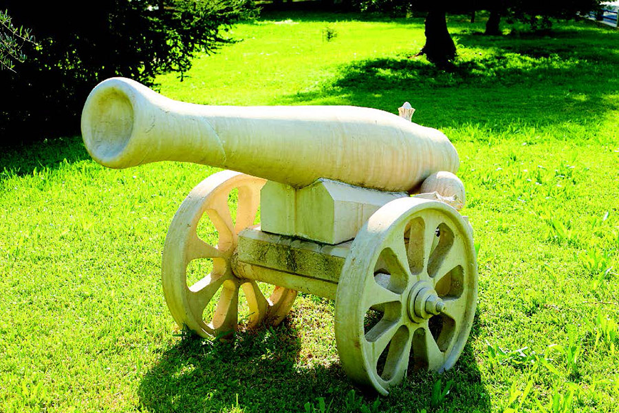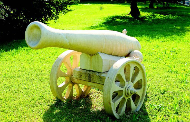 – مدفع من صخر موجود داخل الوزارة في الحديقة قرب مخفر الشرطة.