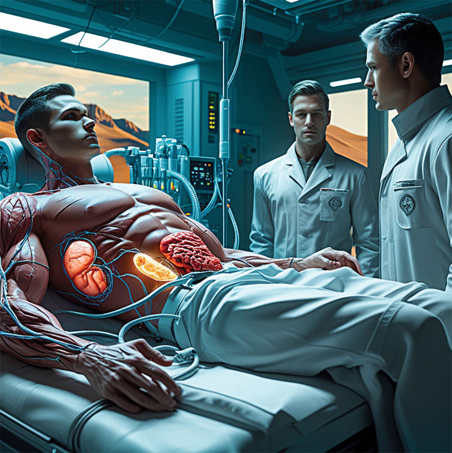 في موازاة ذلك، أتاح التقدّم البيولوجي تدخلات دقيقة في الجينات البشرية، مكّنت من تعزيز مقاومة الجندي للبرودة، وزادت قدرته على التحمّل في البيئات القاسية، بل وسرّعت وتيرة التئام الجروح. وقد اختُبرت هذه التعديلات في محاكاة بيئات جبلية وصحراوية وتحت الماء، فأظهرت نتائج أولية واعدة. يضاف إلى ذلك استخدام الدم الاصطناعي الذي يمكن أن يحلّ محل الدم الطبيعي في حالات النزف، ما يعزز فرص بقاء الجندي في ظروف ميدانية قاسية (Shaaban, 2023). وتشير دراسات حديثة إلى إمكانية تطوير أعضاء ذاتية الإصلاح، كالكبد والطحال، ما يقلّل الحاجة إلى التدخل الجراحي ويزيد فرص النجاة في أرض المعركة (National Academies, 2021).