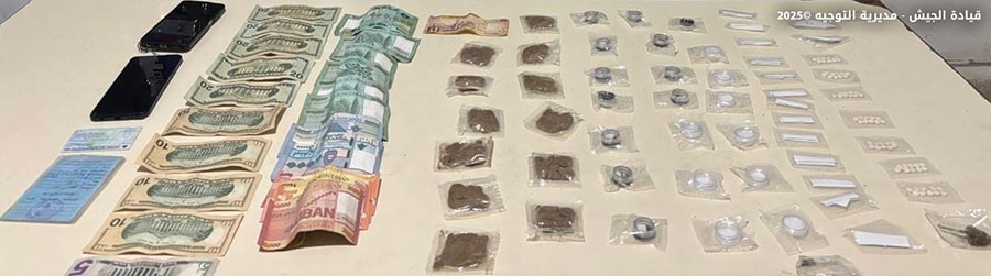 يواصل الجيش ملاحقة المطلوبين ومروجي المخدرات والمخلين بالأمن في مختلف المناطق اللبنانية، وفي هذا السياق، أوقفت دورية من مديرية المخابرات في منطقة المعاملتين – كسروان السوري (د.ع.) والفسلطينية (م.ع.) لتأليفهما عصابة لترويج المخدرات بين كسروان وساحل المتن وضبطت في حوزتهما كمية منها.
