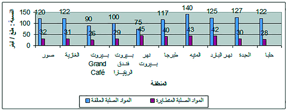 في تشرين الثاني 1999 أجرى مركز الموارد المائية التابع للجامعة الاميركية دراسة حول تأثير رمي النفايات على نوعية المياه وذلك في 9 أنهر أساسية، وأشارت النتائج للعينات ولنماذج الترسبات التي خضعت للاختبار إلى وجود تركيز مرتفع للأكسيجين الحيوي إضافة إلى البكتيرية الكولونية البرازية. إن هذه النتائج ناتجة عن المجارير المنزلية الغير معالجة والتي يقيمها المواطنون في جور صحية قرب منازلهم خاصة في الريف اللبناني حيث تترسب في الاحواض المائية بعامل الزمن إلى الينابيع الجوفية والمجاري الباطنية.