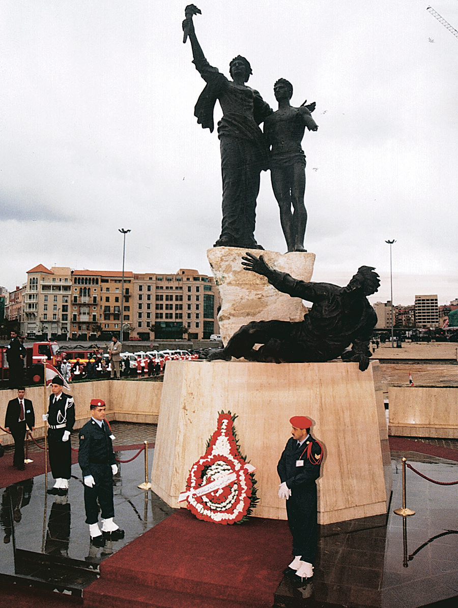 ومن ثم وضع رئيس الجمهورية إكليلاً من الزهر على النصب التذكاري للشهداء، بينما قدمت الموسيقى عزفة الموتى ثم لازمة النشيد الوطني ولازمة نشيد الشهداء.