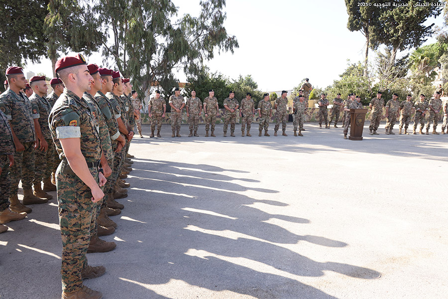 وتوجه إليهم بالقول: "أقدّر تفانيكم وولاءكم للجيش والوطن. لقد أثبتم أنكم على قدر المسؤولية الجسيمة الملقاة على عاتقكم، واكتسبتم ثقة الدول الشقيقة والصديقة. علينا مواصلة بذل الجهود والتضحيات لإتمام واجبنا، وستبرهن المرحلة المقبلة من جديد أن الجيش يملك قوة الحق، وأنه حامي المصلحة الوطنية".