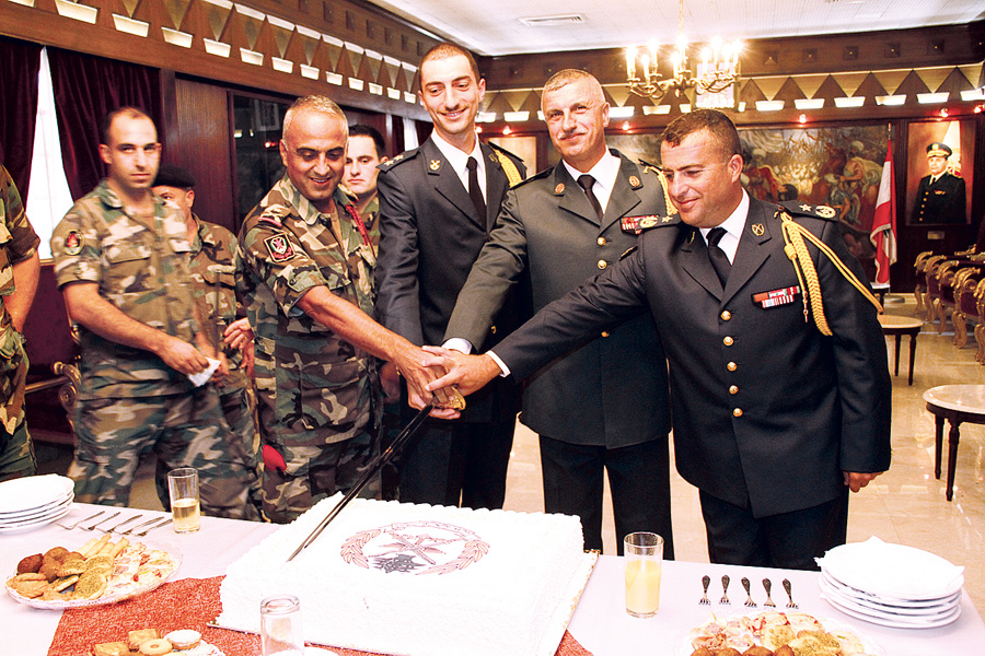 وعندما واجهتم الكثير من الأخطار، رحتم تأمرون جنودكم لرفع جَور الباطل عن الوطن، وظلم العدوان عليه، فتردد صدى صوتكم في المواقع شتى، من دون أن يسهى عن بالكم أن تحموا بقوة الحق والإيمان التي تمتلكون، حق شعبكم في التشبث بأرضه، وفي ممارسة حريته والعيش بأمان واستقرار، عندها أثبتم بفضل كفاءاتكم ومهاراتكم، أنكم ضباط أعوان لقادتكم، بكلّ ما للكلمة من معنى».