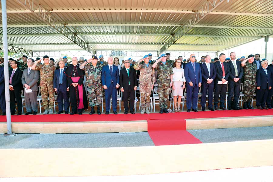 بعد النشيد الوطني اللبناني ونشيد الأمم المتّحدة، جرى عرض عسكري على وقع الموسيقى العسكرية، ووقف الجميع دقيقة صمت إجلالًا لأرواح شهداء «اليونيفيل» الذين سقطوا في جنوب لبنان.