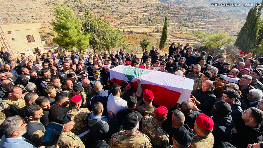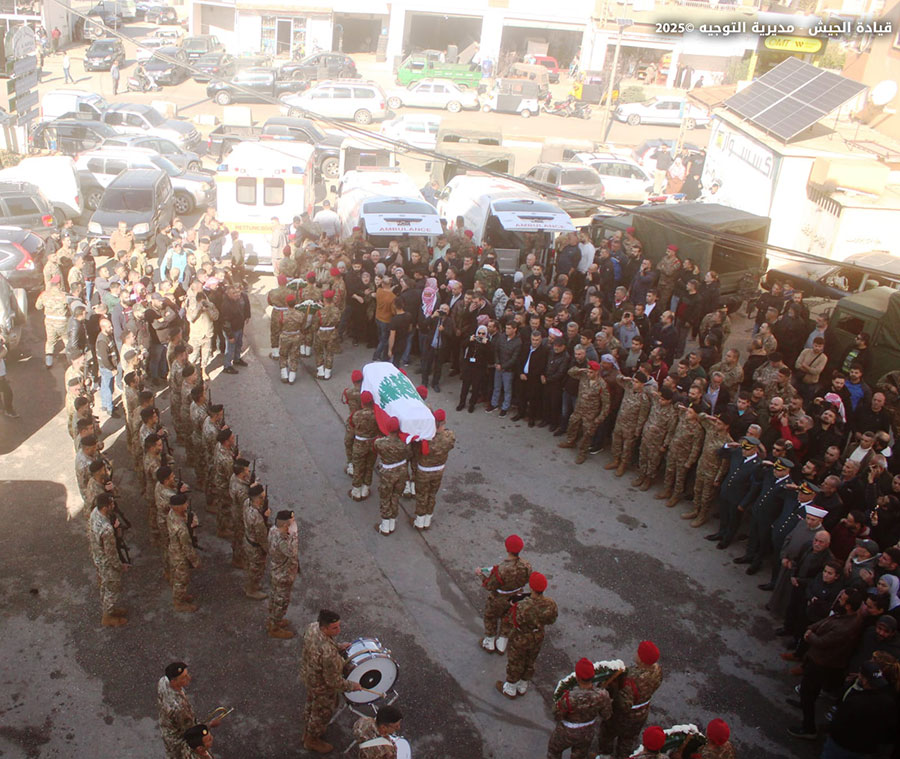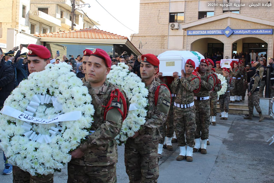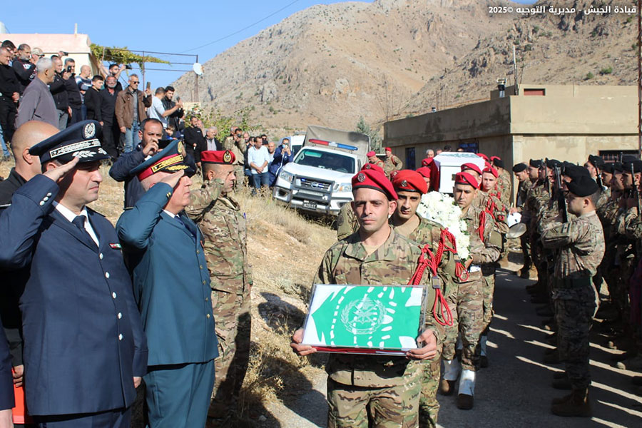 شيّعت قيادة الجيش وأهالي بلدة معربون - بعلبك العريف الشهيد علي حيدر الذي كان قد استشهد بتاريخ 18 /11 /2025، نتيجة اشتباكات مع مطلوبين أثناء تنفيذ مديرية المخابرات سلسلة عمليات دهم بمؤازرة وحدة من الجيش في منطقة الشراونة - بعلبك.