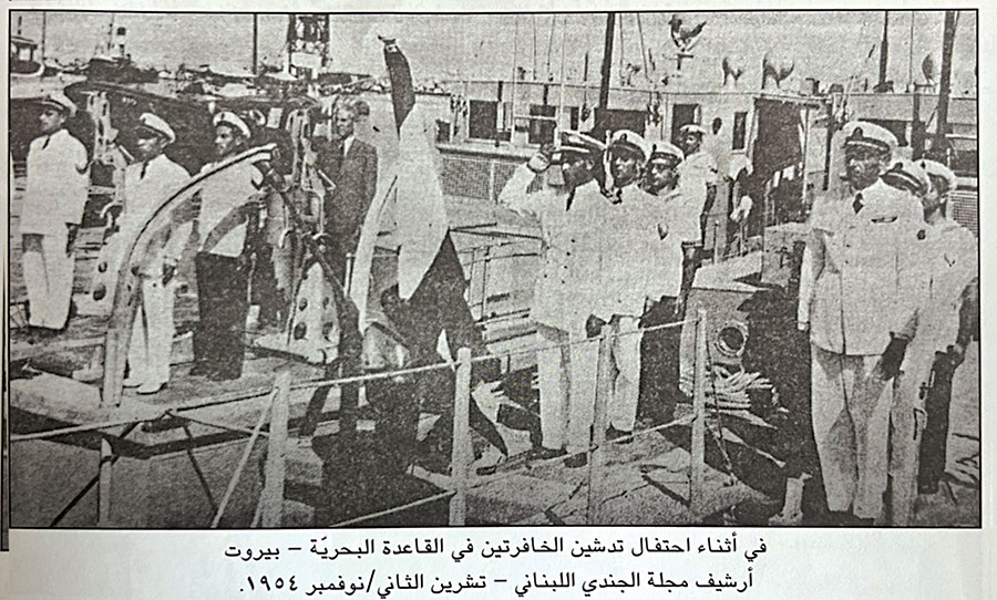 أنشأت قيادة الجيش سلاح البحرية بتاريخ 1 شباط 1955، وقد تشكّل من قاعدة بحرية، وزوارق حربية (3 vedettes de 20m et une de 10m) تمركزت في قاعدة بيروت البحرية - مرفأ بيروت. وخلال شهر تموز 1954 سافرت بعثة عسكرية لبنانية إلى ANTIBES الفرنسية حيث الشركة التي صنّعت خافرتين، فاستلمهما الجيش وأطلق عليهما اسمَي «بيبلوس» و«صيدون». وفي العام 1955 استلم الجيش الخافرة «بيروت»، كما استلم في العام 1958 مركب إنزال أميركي طوله 40 مترًا أطلق عليه اسم «صور».