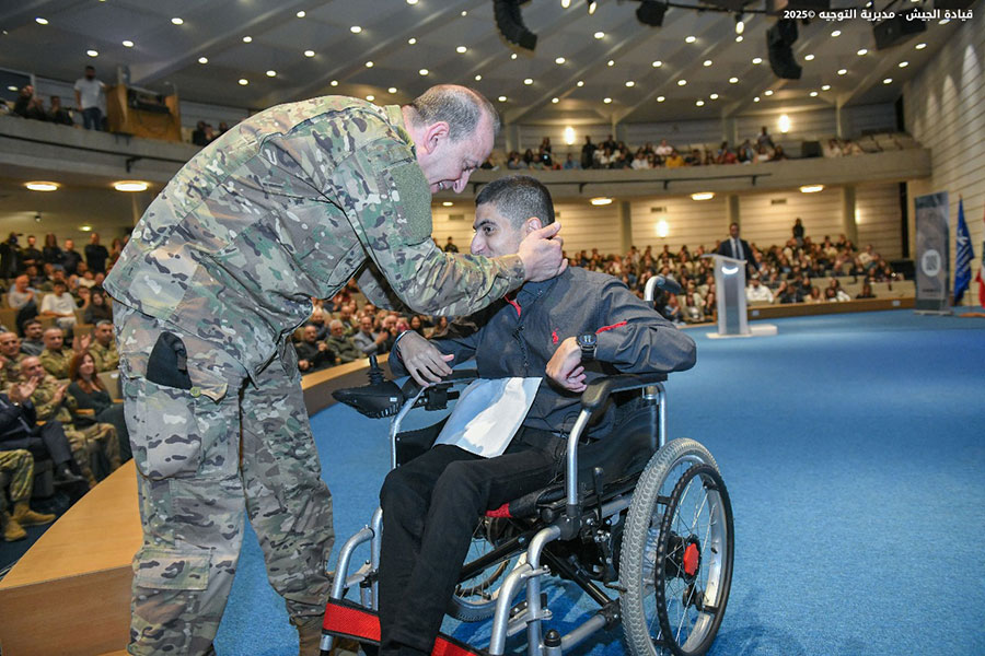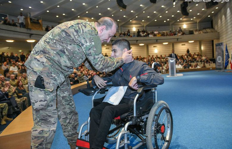 وأضاف: "الجيش قوي ولا خوف عليه، وهو قادر على الصمود في وجه العواصف، ويضع نصب عينيه الدفاع عن لبنان بكل مكوناته. إن المؤسسة تنظر بعين واحدة إلى جميع اللبنانيين، وهي تبذل قصارى جهدها لأداء واجبها بشفافية واحتراف، وقد سقط منها العديد من الشهداء والجرحى على مذبح الوطن".
