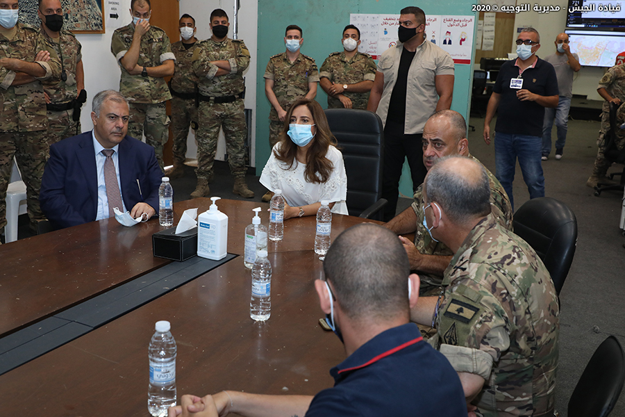 جولة نائب رئيس مجلس الوزراء وزيرة الدفاع في حكومة تصريف الأعمال زينة عكر في غرفة الطوارىء المتقدمة في بلدية بيروت
