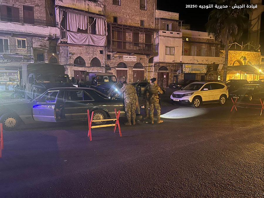 نفذ الجيش ليل 18 - 19 / 12 /2025 تدابير أمنية استثنائية في مختلف المناطق في سياق مهمات حفظ الأمن وملاحقة المطلوبين، وأوقف عددًا من الأشخاص من جنسيات مختلفة لتورّطهم في جرائم متعدّدة، منها الاتجار بالمخدرات وارتكاب أعمال السرقة والتهريب وحيازة أسلحة وممنوعات، والتجوّل داخل الأراضي اللبنانية بصورة غير شرعية. شملت المضبوطات كمية من المخدرات وأسلحة حربية متنوعة، وكميّات من الذخائر، بالإضافة إلى عددٍ من الآليات والدرّاجات النارية غير القانونية.