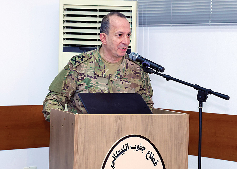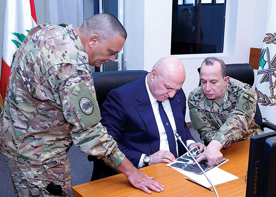 ثم قدّم رئيس قسم العمليات في قطاع جنوب الليطاني العقيد الركن رشاد بو كروم عرضًا مفصّلًا معزّزًا بالخرائط والأرقام حول الوضع الراهن في القطاع، والأعمال التي ينفّذها الجيش تطبيقًا للخطة التي وضعتها القيادة، لاسيما لجهة إزالة الذخائر وضبط الأسلحة والمنشآت تنفيذًا لقرار الحكومة بحصر السلاح في يد الدولة. وتضمّن العرض معلومات حول ما أُنجز حتى الآن، وحول انتشار الجيش في المواقع والمراكز المحددة والحواجز الدائمة والظرفية والأماكن المستحدثة على طول الحدود، والدوريات التي يسيّرها الجيش للحفاظ على الأمن والاستقرار في المنطقة.
