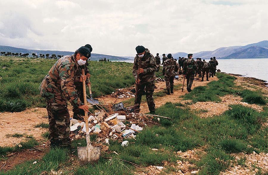 لأنه معروف "المنقذ" في الصعاب والملمات مهما اختلفت مسبباتها ونتائجها، ولأنه أول من يتدخل للإصلاح والإنقاذ في أي مجال يخدم مصلحة الوطن والمواطن، هرع الجيش لتلبية نداء الوطن وقد كان هذه المرة "بيئياً"، فاستجاب 400 عنصر من الألوية والأفواج لإعلان الطوارئ في بحيرة القرعون، حيث "تسلّحوا" بالرفوش وأكياس البلاستيك وانتشروا في محيط البحيرة من جسر صغبين حتى السد، ضمن عملية تنظيف واسعة انتشلوا خلالها نفايات من مختلف الأشكال والأنواع والأحجام.