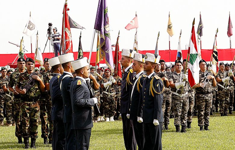 بعد كلمة رئيس الجمهورية بدأت القوى المشاركة بعرض التحية، وشاركت تباعًا: موسيقى الجيش، الأعلام والبيارق، المدرسة الحربية، معهد التعليم (مدرسة الرتباء)، القوات البحرية، القوات الجوية، الشرطة العسكرية، لواء الحرس الجمهوري، لواء الدعم، اللواء اللوجستي، المديرية العامة لقوى الأمن الداخلي، المديرية العامة للأمن العام، المديرية العامة لأمن الدولة، مديرية الجمارك العامة، فرع المكافحة، فوج مغاوير البحر، الفوج المجوقل، وفوج المغاوير.