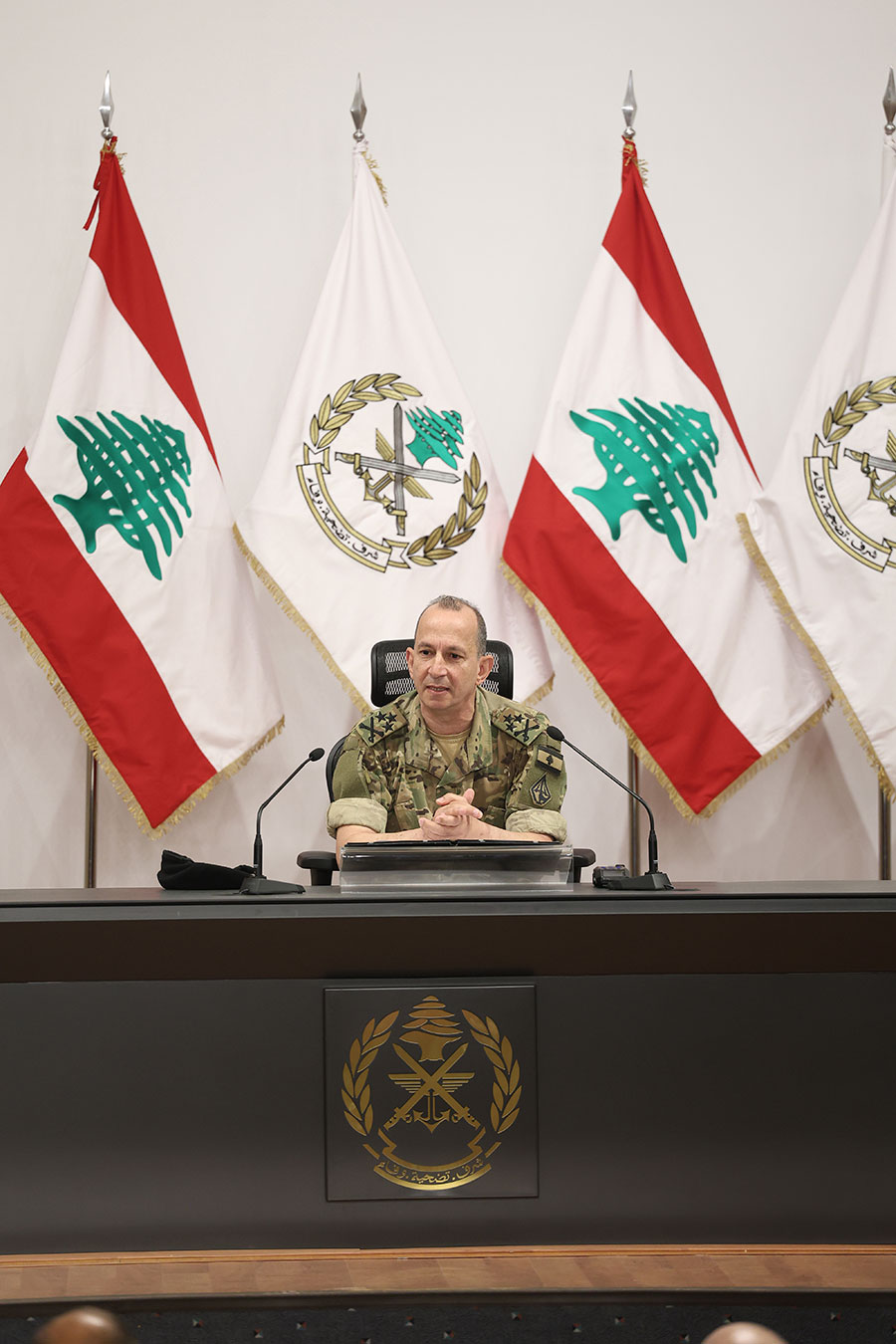 وقال: «الجيش نفذ انتشارًا واسعًا ومهمًّا في منطقة جنوب الليطاني بالتنسيق والتعاون الوثيق مع قوة الأمم المتحدة المؤقتة في لبنان - اليونيفيل، فيما لا يزال العدو الإسرائيلي يحتل عدة نقاط عقب عدوانه الأخير على بلدنا. إن استمرار الاحتلال هو العائق الوحيد أمام استكمال انتشار الوحدات العسكرية، وقد أبدى الأهالي في الجنوب تعاونًا كاملًا مع الجيش، وقيادة الجيش تتواصل باستمرار مع لجنة مراقبة وقف الأعمال العدائية (Mechanism).»