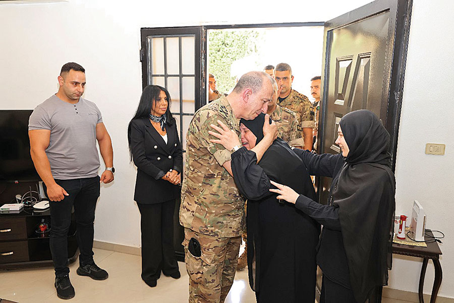 وكان قائد الجيش قد زار مع عقيلته عددًا من عائلات العسكريين الشهداء بمناسبة ذكرى شهداء الجيش في بلدات دير قانون رأس العين – صور، والبرجين – الشوف، ونابيه – المتن، معربًا عن اعتزازه بتضحياتهم وتضحيات رفاقهم الشهداء، ولافتًا إلى أن قيادة الجيش تقدّر عائلات الشهداء وتقف إلى جانبها في مختلف الظروف.