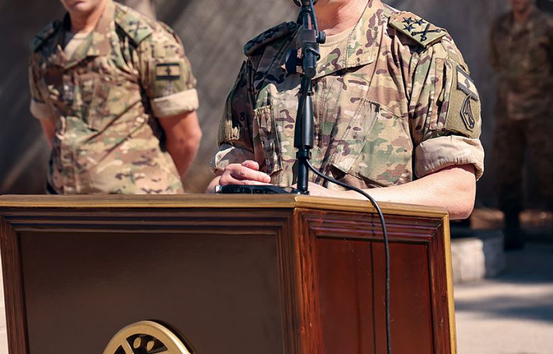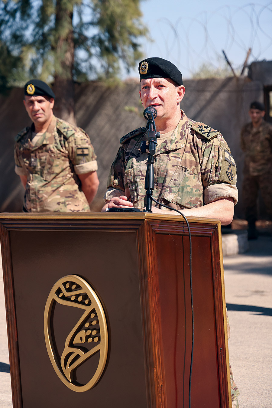 وتوجّه إليهم بالقول: «أقدّر تفانيكم وولاءكم للجيش والوطن. لقد أثبتّم أنكم على قدر المسؤولية الجسيمة الملقاة على عاتقكم، واكتسبتم ثقة الدول الشقيقة والصديقة. علينا مواصلة بذل الجهود والتضحيات لإتمام واجبنا، وستبرهن المرحلة المقبلة من جديد أن الجيش يملك قوة الحق، وأنه حامي المصلحة الوطنية».
