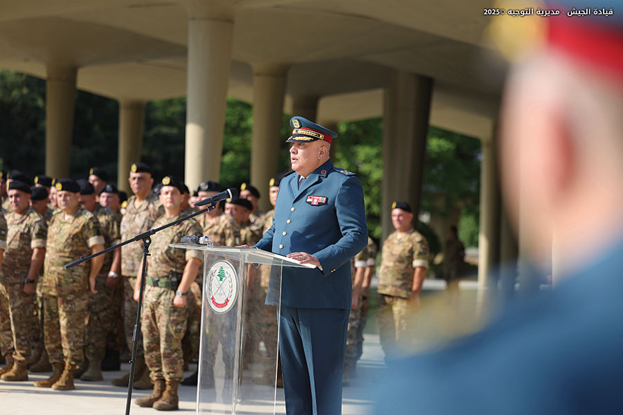 «الجيش لن يتهاون في إحباط أي محاولة للمساس بالأمن والسلم الأهلي أو جر الوطن إلى الفتنة، وسيبقى الضامن لجميع اللبنانيين والحريص على وحدتهم وتماسكهم وتَضامنهم في إطار مؤسسات الدولة». كما استعرض اللواء الركن عوده الوحدات المتمركزة في مبنى القيادة.