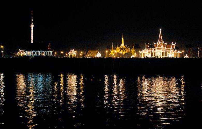 وفي المساء يتلألأ النهر بواسطة القوارب المضاءة بآلاف الألوان والأشكال المبهرجة والملونة التي تحمل شعارات مختلف مؤسسات الدولة من وزارات وإدارات رسمية. بعدها تنفجر في سماء العاصمة نجوم الألعاب النارية، ويبدأ الحضور بإصدار أصوات صاخبة مصفقين مهللين لهذا المهرجان المفرح الذي يدخل البهجة والسرور إلى أنفس الكمبوديين.
