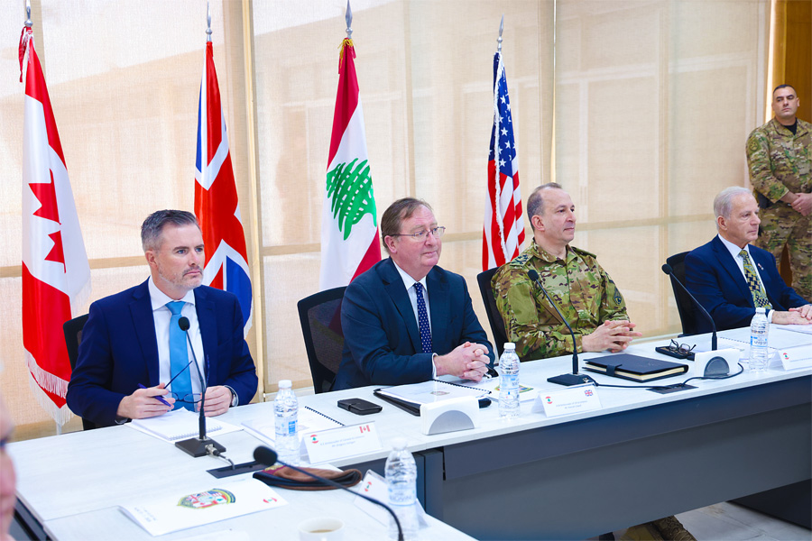 عُقد بتاريخ 2026-1-21 في مبنى قيادة الجيش في اليرزة اجتماع لجنة الإشراف العليا على برنامج المساعدات لحماية الحدود البرية، بحضور قائد الجيش العماد رودولف هيكل، والسفير الأميركي ميشال عيسى والسفير البريطاني Hamish Cowell والسفير الكندي Gregory Galligan، إلى جانب عدد من ضباط القيادة وقادة الوحدات، وأعضاء فريق العمل المشترك اللبناني – البريطاني – الأميركي، وفريق التدريب الاستشاري البريطاني (BTAT)، وفريق التدريب الكندي (CTAT). خلال الاجتماع، عُرضت المراحل المنفَّذة من البرنامج والخطوات المقبلة لتلبية حاجات الوحدات العسكرية المكلّفة بضبط الحدود الشمالية والشرقية ومكافحة التهريب والتسلل غير الشرعي، والتحديات التي تواجهها هذه الوحدات وسط التطورات الراهنة.