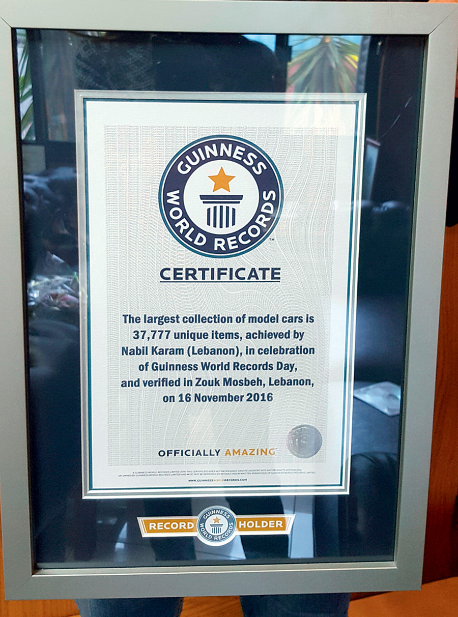 نبيل كرم يدخل بأكبر مجموعة من السيارات الرياضية الصغيرة والمجسمات غينيس ثلاث مرات