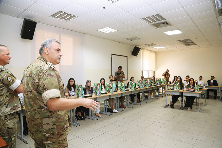 وقد ألقى ممثل قائد الجيش في الاحتفال كلمة استهلّها بتهنئة الطلاب المتخرّجين مشدّدًا على أنّ هذه الدورة هي إحدى ثمار سياسة الانفتاح على المجتمع المدني التي انتهجها العماد جوزاف عون قائد الجيش اللبناني منذ وصوله إلى سدّة القيادة، وأشار إلى أنّ الجيش لا يرمز فقط للسلاح بل للعلم أيضًا، وخير مثال على ذلك هم الضباط الذين تولّوا التدريب بكفاءة عالية، وتوجّه إلى الطلاب قائلًا: «كونوا رُسُلًا للجيش في مجتمعكم وبين أهلكم وفي جامعاتكم لنقل الوجه الحقيقي لهذا الجيش الذي يشكّل العمود الفقري للبلد».