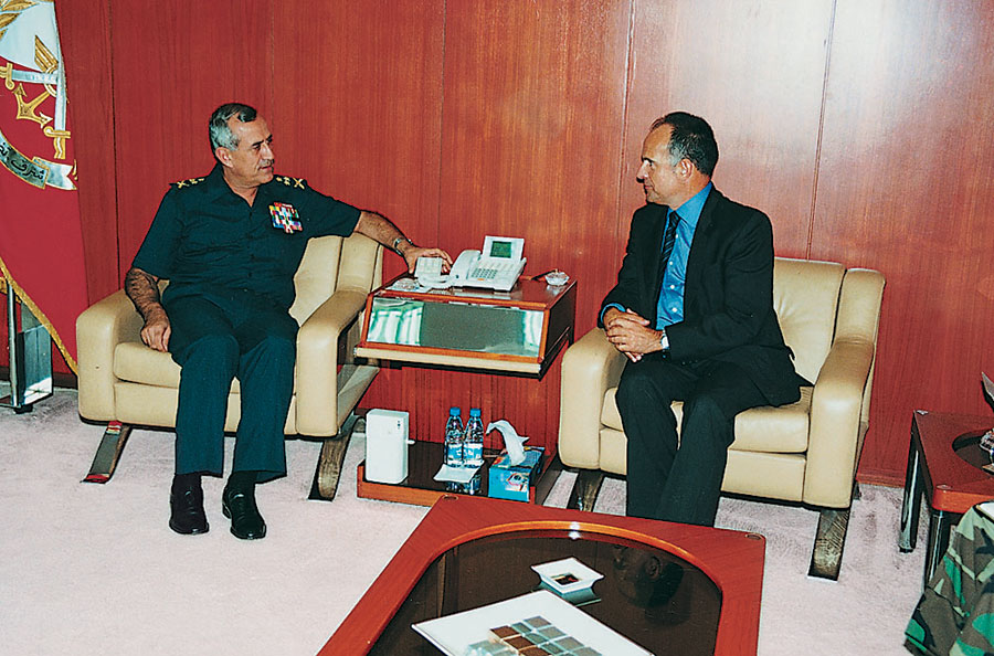 استقبل العماد قائد الجيش، في مكتبه في اليرزة، الملحق العسكري المصري العقيد محمود يونس في زيارة وداعية قدم خلالها خلفه المقدم أشرف عبدالرؤوف أحمد الغريب.
