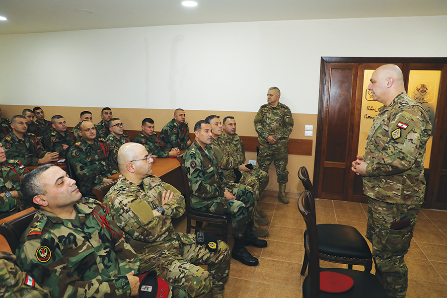 وقد هنّأ قائد الجيش الضباط والعسكريين في مناسبة حلول الأعياد المجيدة، ونوّه بجهودهم المبذولة لضبط الأمن ومكافحة الجريمة وتطبيق القانون والنظام، مؤكّدًا أهمية دور الشرطة العسكرية في الحفاظ على قيم الجيش ومبادئ رسالته، خصوصًا المناقبية والانضباط، بما يسهم في تحصين مناعته، وتمتين روابط الثقة بين المجتمعين العسكري والمدني. ودعا العماد عون العسكريين إلى تكثيف المهمّات الأمنية خلال فترة الأعياد، لطمأنة المواطنين والحفاظ على السلامة العامة، والتدخّل الفوري لتوقيف مطلقي النّار وإحالتهم على القضاء المختص.