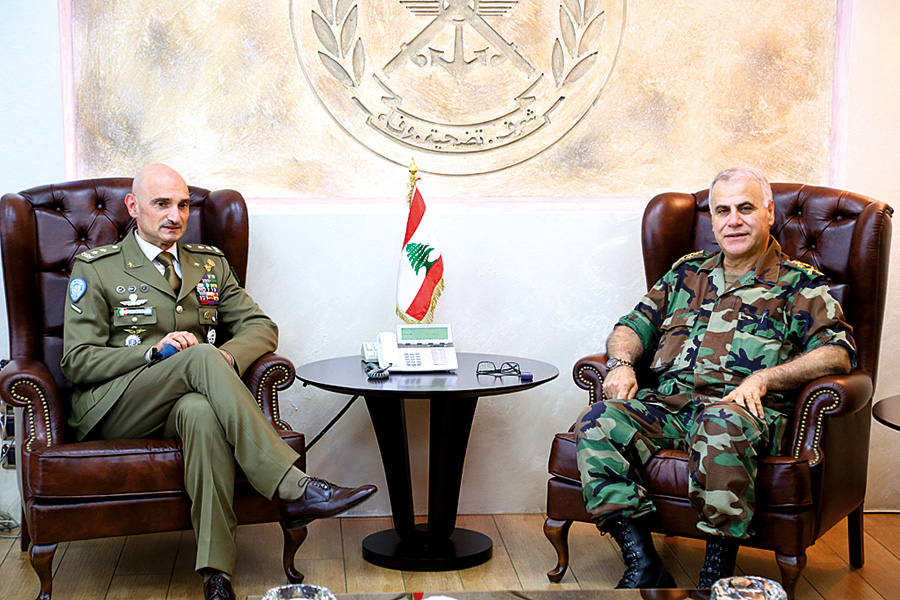 ... وقائد قوّاتها استقبل العماد قائد الجيش، قائد قوات الأمم المتحدة المؤقتة في لبنان الجنرال لوتشيانو بورتولانو، واستعرضا الأوضاع على الحدود الجنوبية وعلاقات التعاون والتنسيق بين الجانبين.