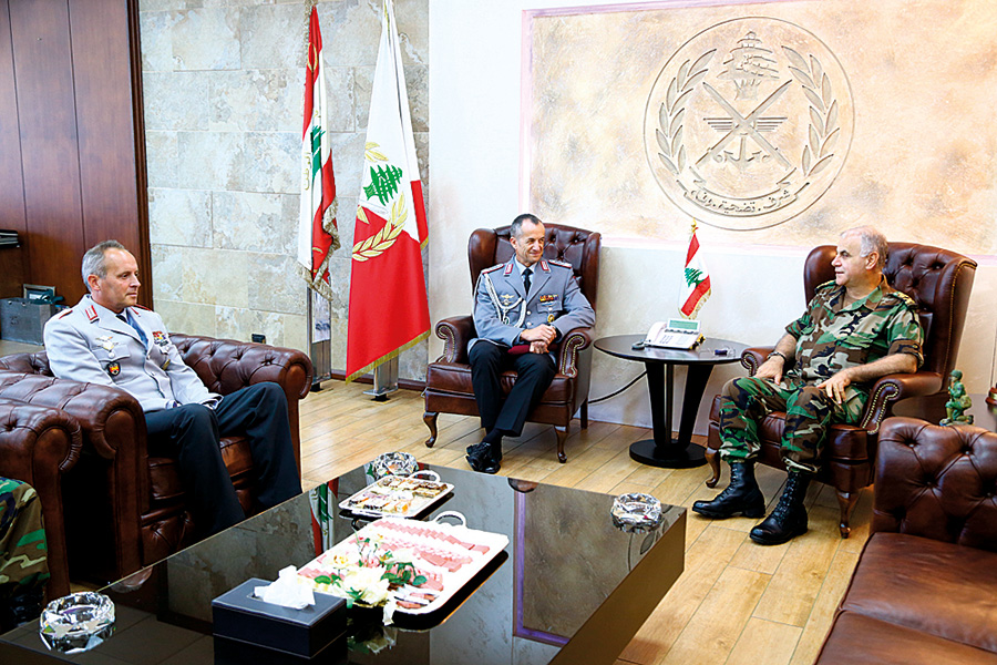 والملحق العسكري الألماني المقدم Uwe Brettschneider مقدّمًا خلفه المقدم Dietrich Jensch.